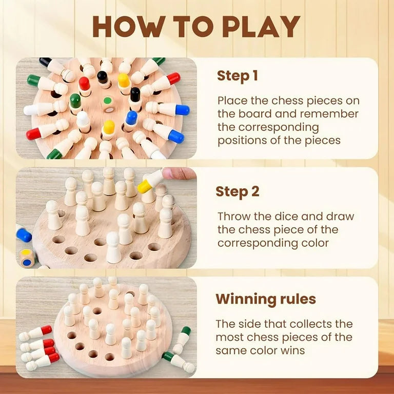 The Educational Wooden Memory Chess Game turns family time into an unforgettable learning adventure. With its Montessori-inspired design for up to 6 players, it builds memory, focus, and strategic thinking while keeping everyone entertained. Roll the wooden cube, match the colored figurine, and race to score points—sparking friendly competition, boosting cognitive skills, and creating moments the whole family will cherish.